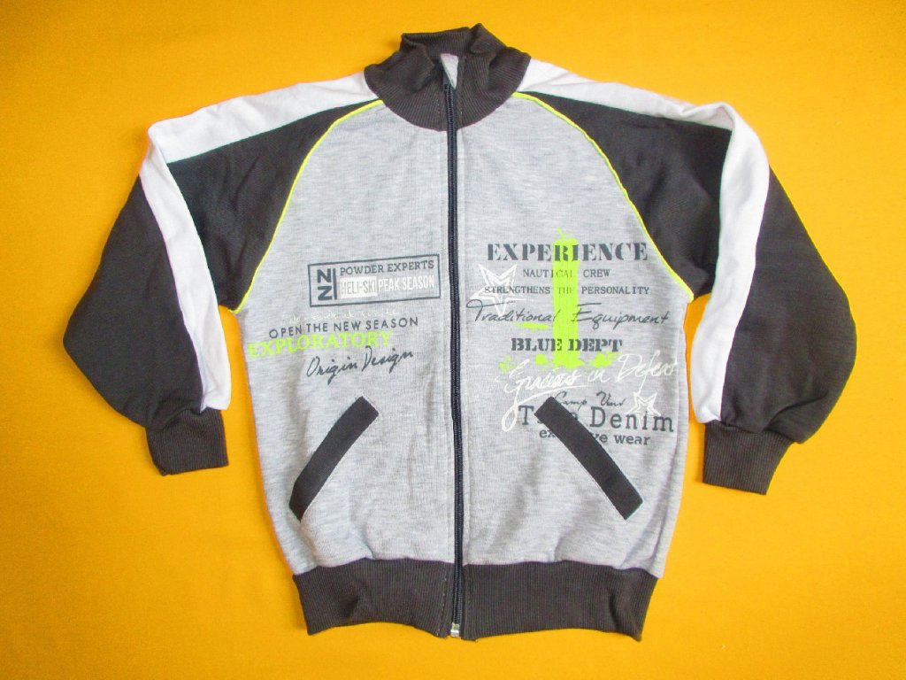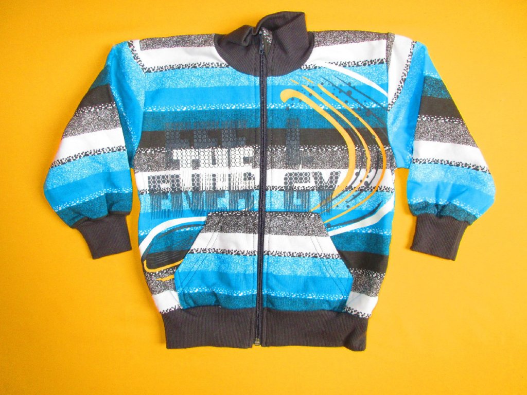 Celopropínací bavlněná mikina se stojáčkem z nepočesaného bavlněného úpletu je zdobená kvalitním potiskem, který bez problémů vydrží opakované praní. Propínání na barevně sladěný zip má u krku všitou látkovou ochranu proti skřípnutí a odírání. Ve spodní části předního dílu je jsou 2 kapsy typu rozpůlené klokanky. Spodní část mikiny a rukávy jsou zakončeny pružným lemem. Doporučený způsob praní v pračce na 40⁰C. Prát a žehlit po rubové straně.