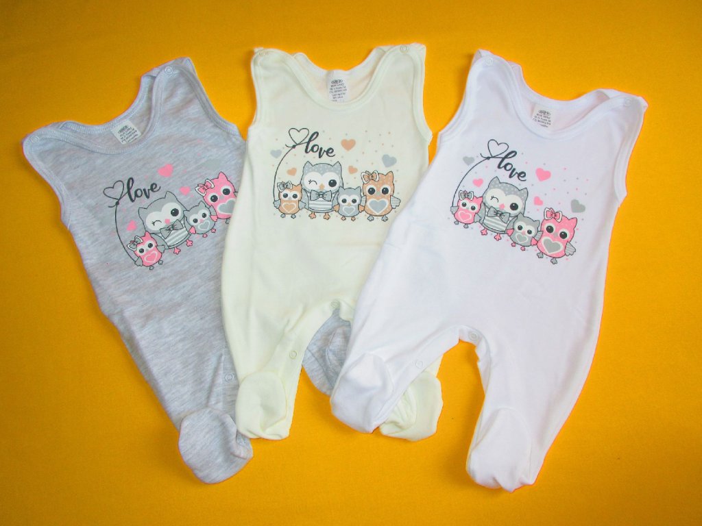 Kojenecké dupačky z jemné bavlny jsou ozdobeny kvalitním potiskem s motivem roztomilých soviček. Potisk vydrží bez problémů opakované praní. Pro snadné oblékání a přebalovaní mají dupačky propínání v rozkroku a na ramínkách. Propínání je na barevně sladěné patentky. Doporučený způsob praní v pračce na 40ᵒC. Prát a žehlit po rubové straně.