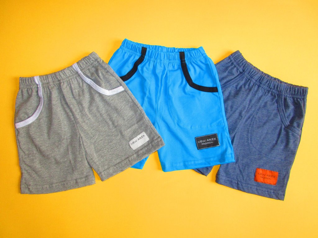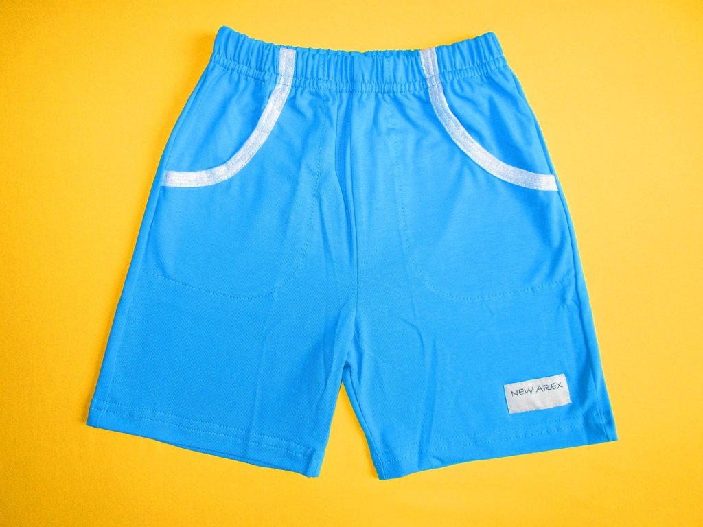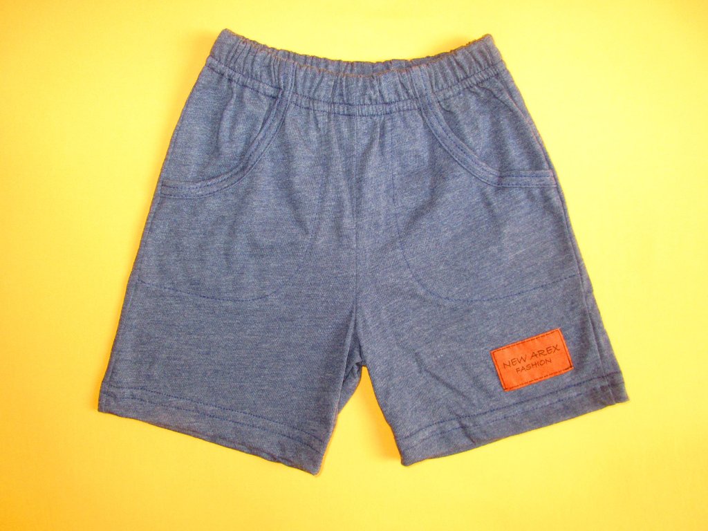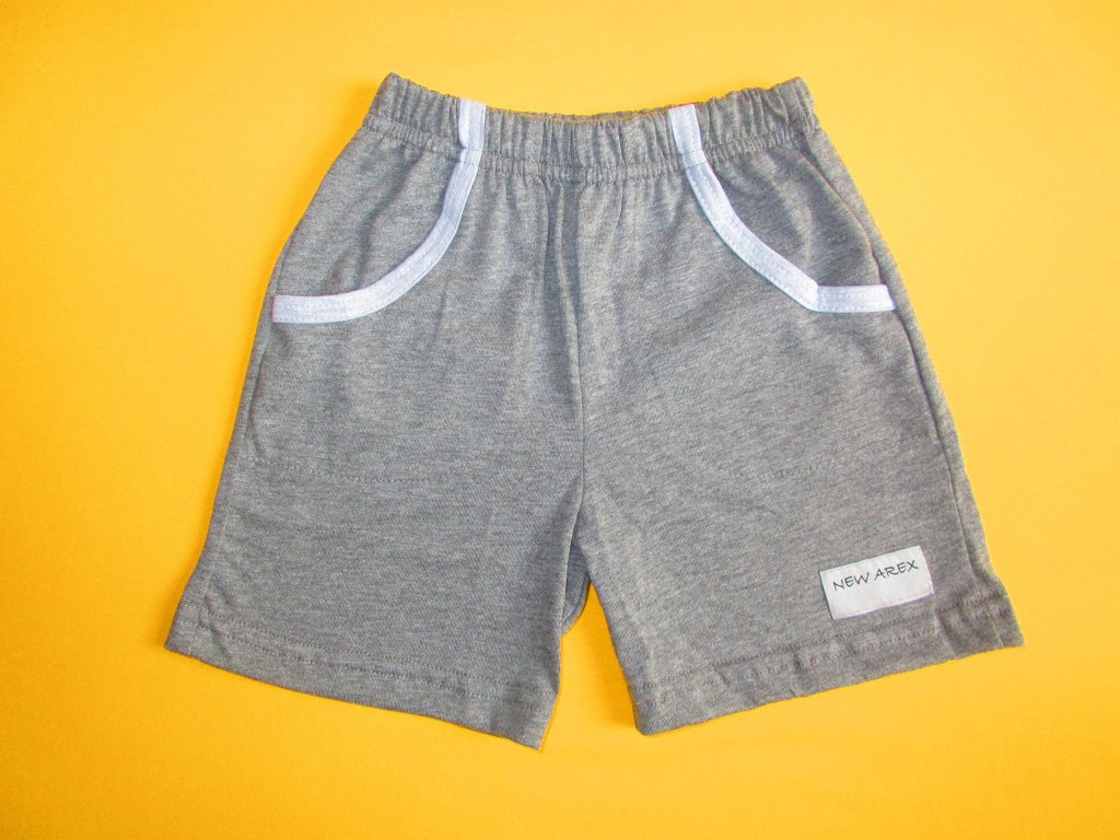Sportovní kraťasy z příjemného nepočesaného lehkého bavlněného úpletu mají v horní části předního dílu všity 2 praktické kapsy zvýrazněné lemováním s dvojitým prošitím. Ve spodní části levé nohavice jsou kraťasy ozdobeny jednoduchou nášivkou s nápisem. V pase jsou kraťasy do širší všité gumy. Nohavice jsou zakončeny volně dvojitým prošitím. Doporučený způsob praní v pračce na 40ᵒC. Prát a žehlit po rubové straně.
