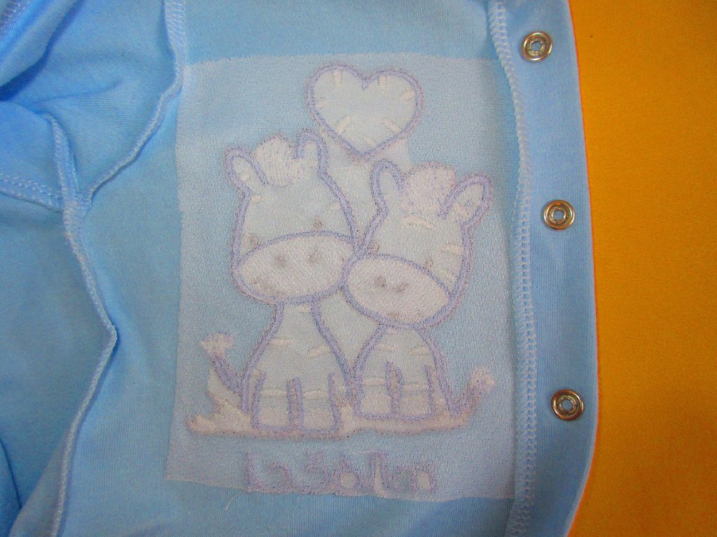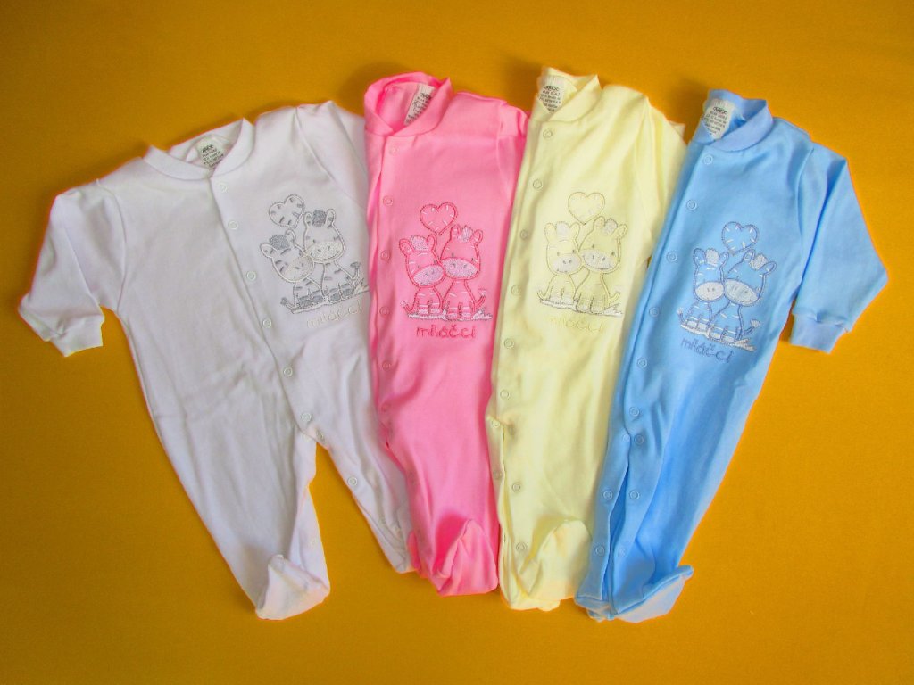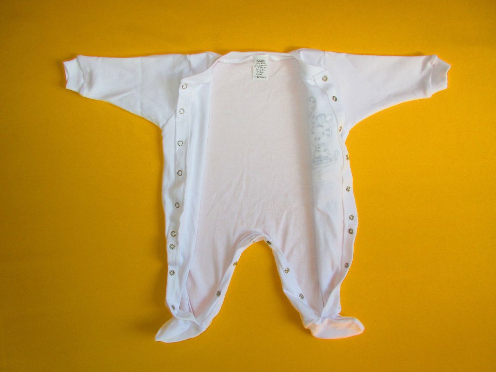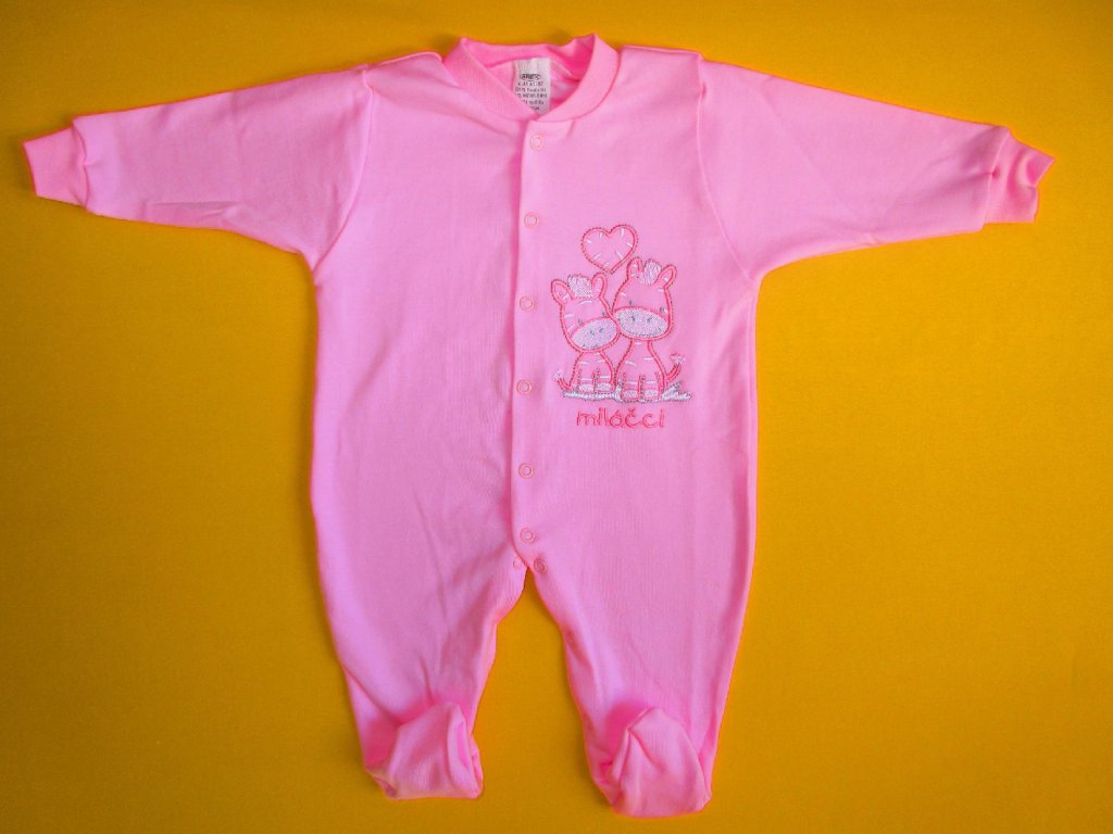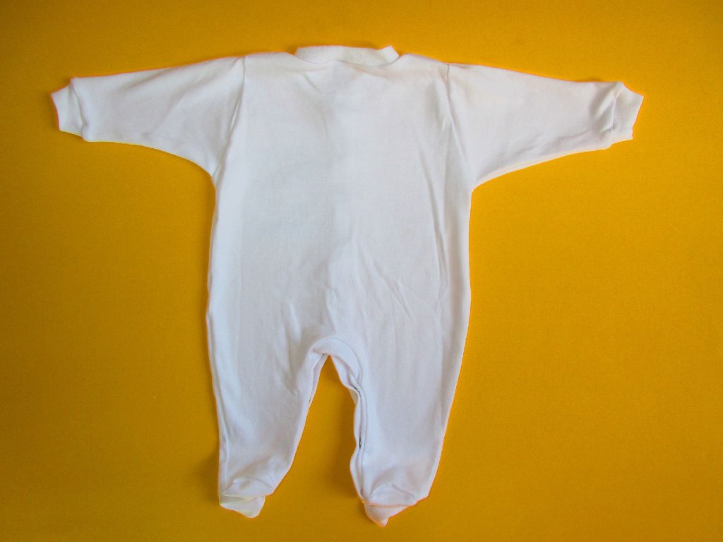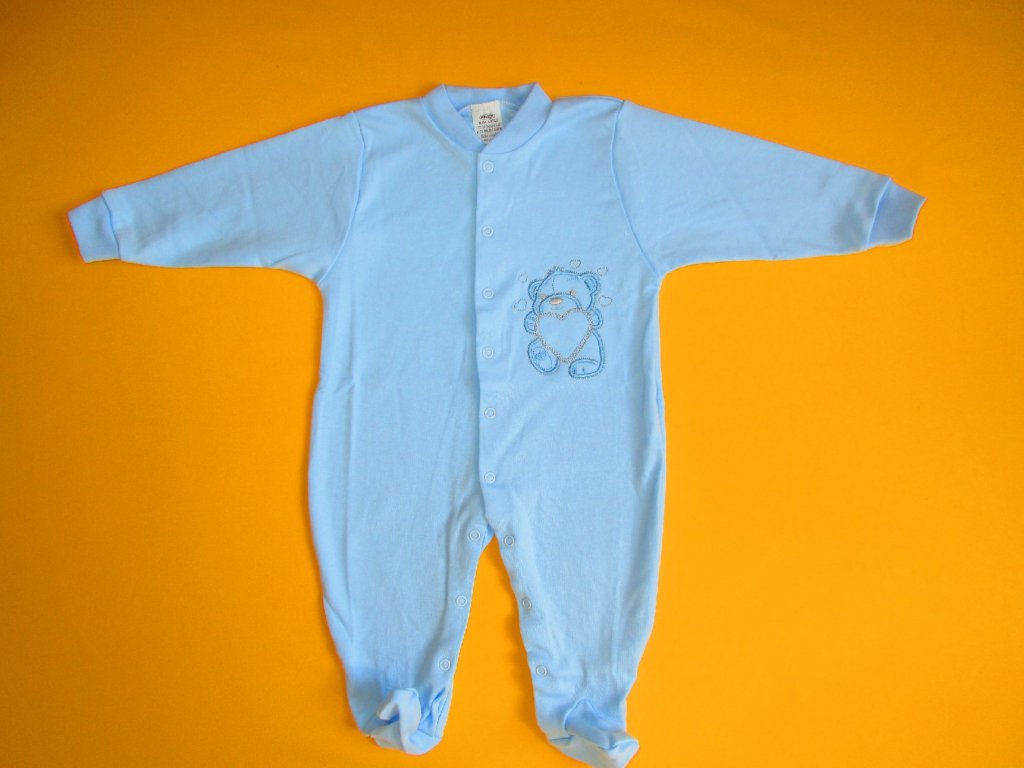 Kojenecký pyžamový overal je ušitý z jemné 100% bavlny. Pravý přední díl je ozdoben něžnou výšivkou, která je z rubu podšitá bavlněnou mřížkou, aby nedráždila citlivou pokožku miminka. Pro snadné oblékání a přebalování je overal celopropínací od patiček až po výstřih. Propínání je na barevně sladěné patentky. Výstřih a rukávy jsou ukončeny měkkým pružným lemem. Doporučený způsob praní: v pračce na 40ᵒC.