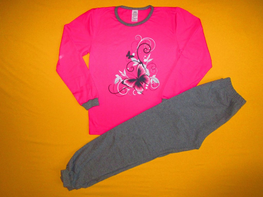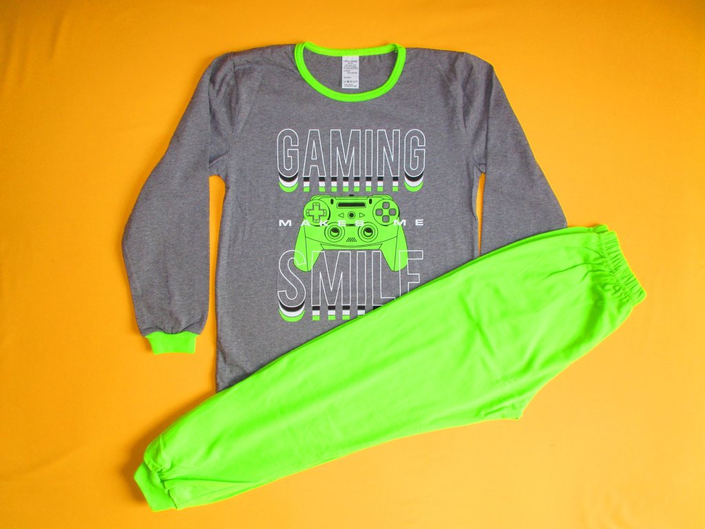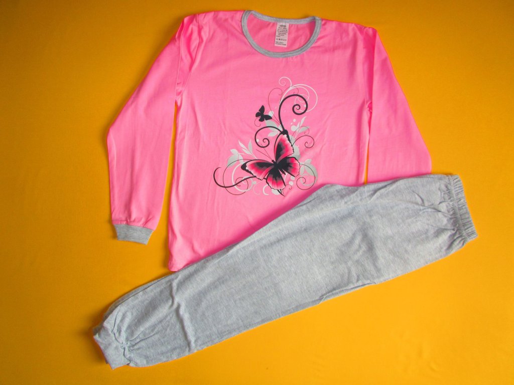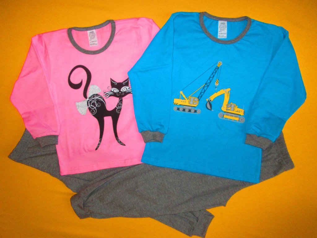 Dvoudílné pyžamo s dlouhým rukávem a nohavicemi je ušito z příjemného bavlněného materiálu. Přední strana horního dílu je zdobena potiskem. Nohavice a rukávy jsou zakončeny barevně sladěným pružným lemem. Kalhoty jsou v pase do gumy. Doporučený způsob praní v pračce na 40ᵒC. Prát a žehlit po rubové straně.