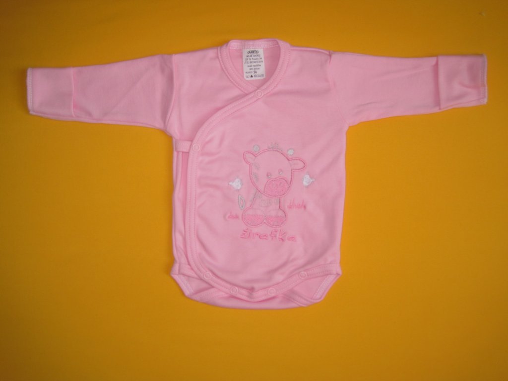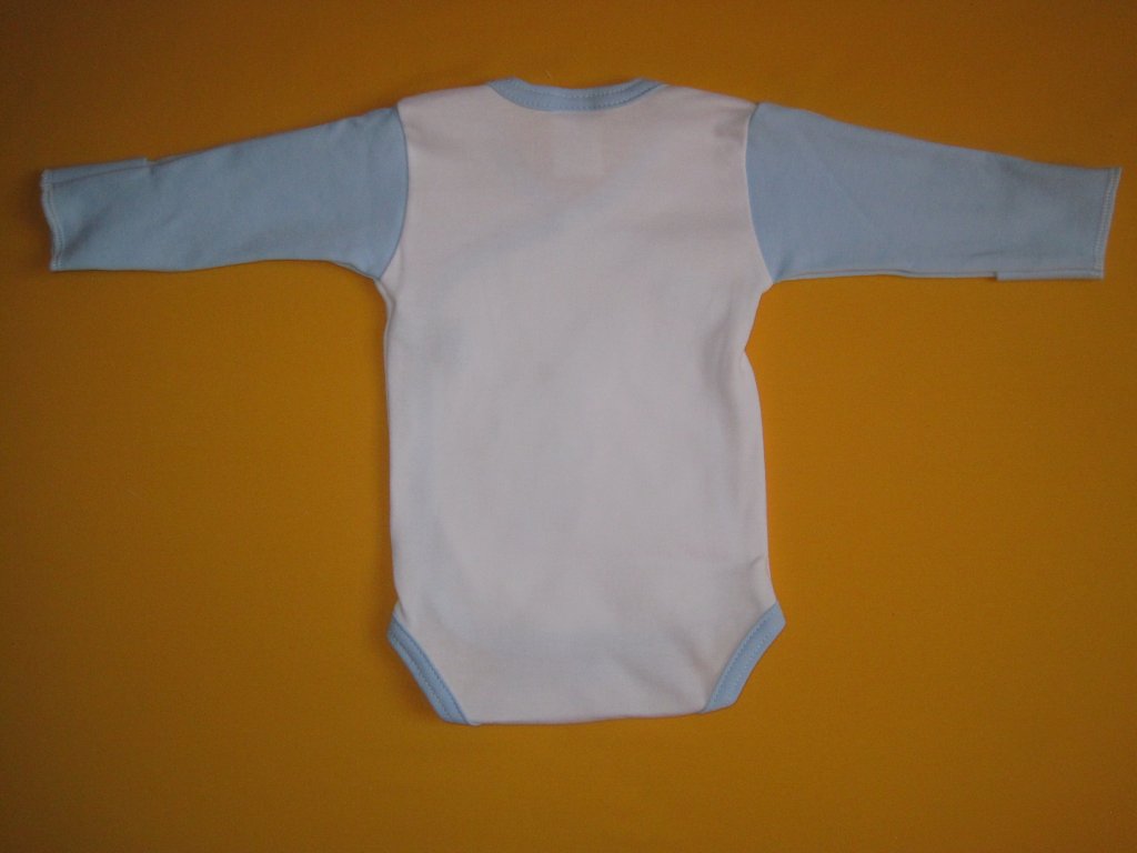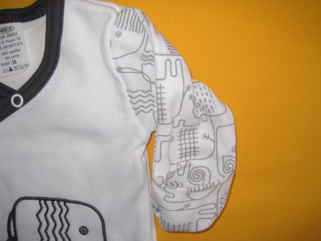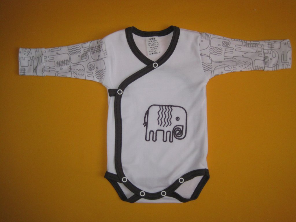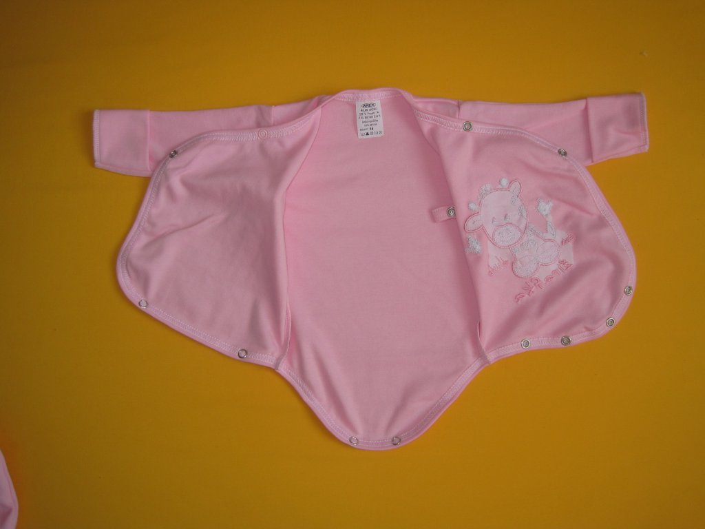 Trojdílná soupravička do porodnice je ušita z jemné 100% bavlny a skládá se z bodyčka, dupaček a čepičky. Body je zavinovací, proto se snadno obléká. Propínání je na patentky. Rukávy jsou zakončeny ohrnovacím lemem, z který lze jednoduše miminku přetáhnout pře ručičku jako rukavici. Přední díl bodyčka je ozdoben výšivkou. Dupačky jsou propínací na ramínkách a v rozkroku. Na přední straně jsou dupačky ozdobeny stejnou výšivkou či potiskem jako body. Čepička s roztomilými oušky, vytvořenými stažením rohů, má překrytí oušek a šňůrku na zavázání. Doporučený způsob praní v pračce na 40ᵒC.