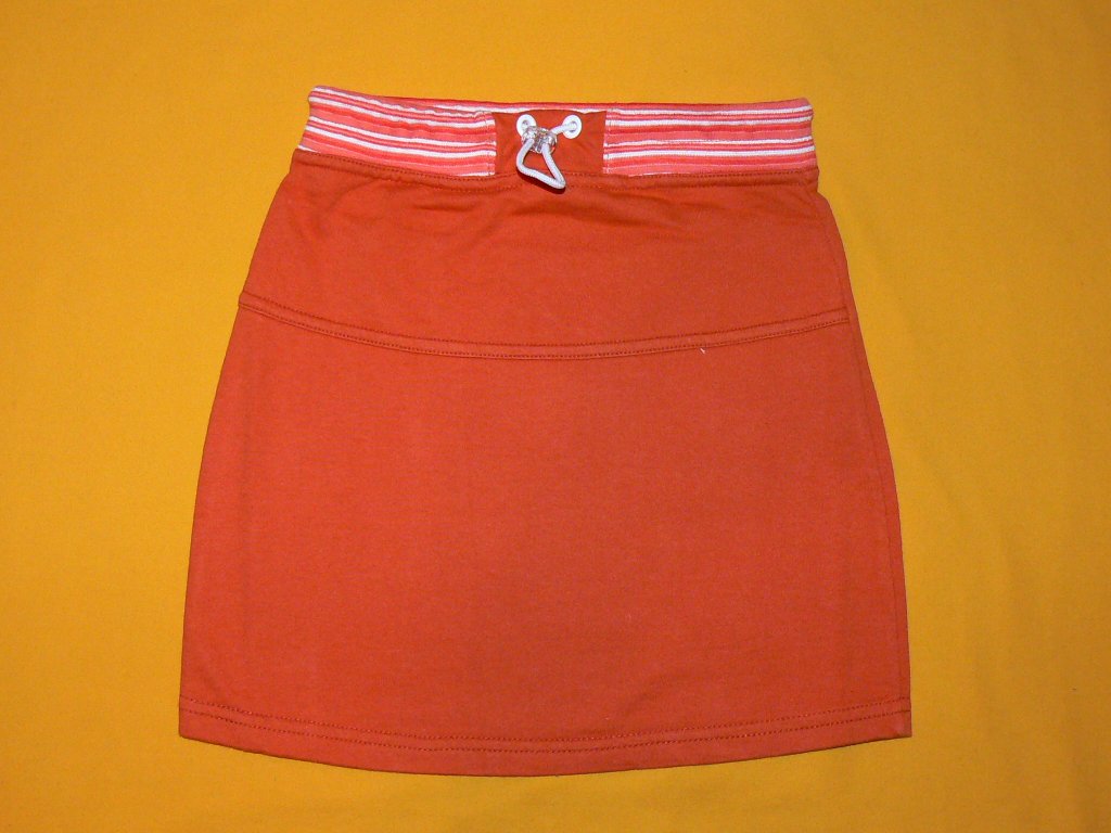 Sportovně střižená, mírně rozšířená, dívčí sukně z příjemného materiálu s barevně sladěnou výšivkou "New look" na zadní straně. Nastavitelná velikost v pase.