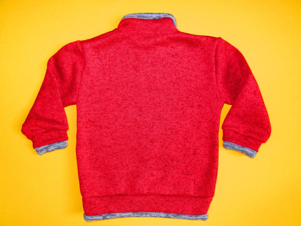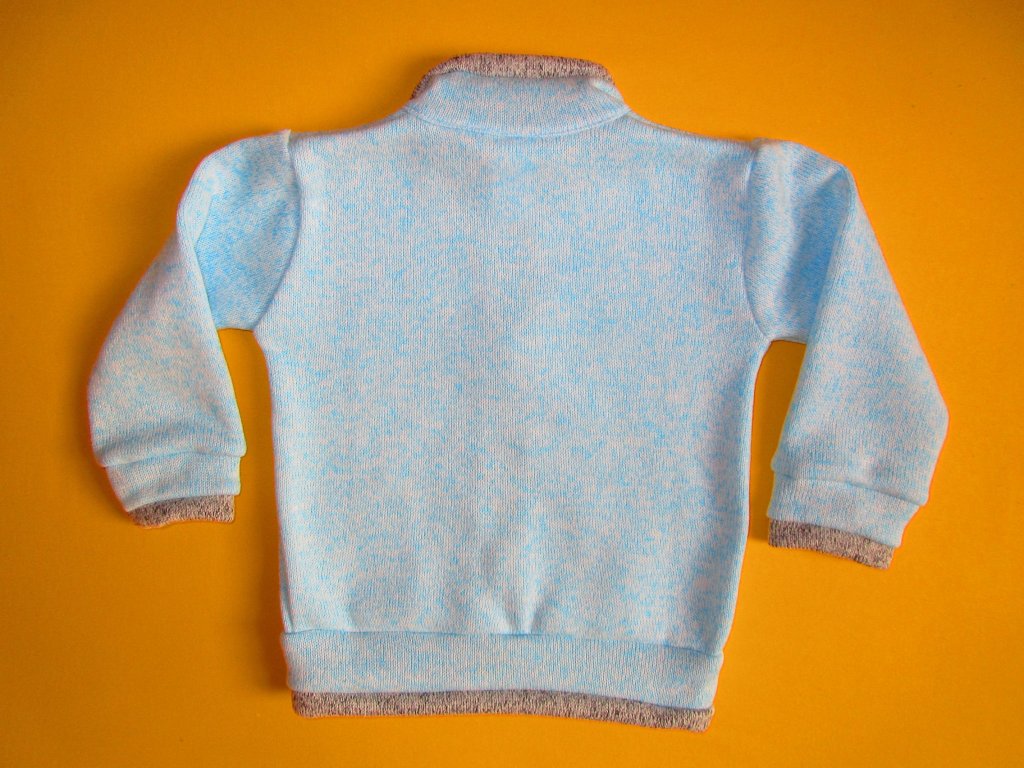 Celopropínací teplá svetrová mikina se stojáčkem je ušita z velmi příjemného nekousavého materiálu, který má z rubové strany strukturu flísu a z lícové strany vypadá jako úplet. Propínání je na dětmi velmi oblíbený zip s krytkou proti skřípnutí kůže na krku. Na levé straně předního dílu je mikina ozdobená decentní nášivkou s nápisem New Arex Fashion. Stojáček, rukávy a spodní část je ukončena manžetou s barevně odlišnými lemy. Doporučený způsob praní v pračce na 40⁰C. Prát a žehlit po rubové straně.