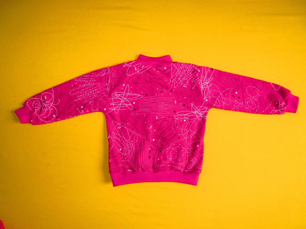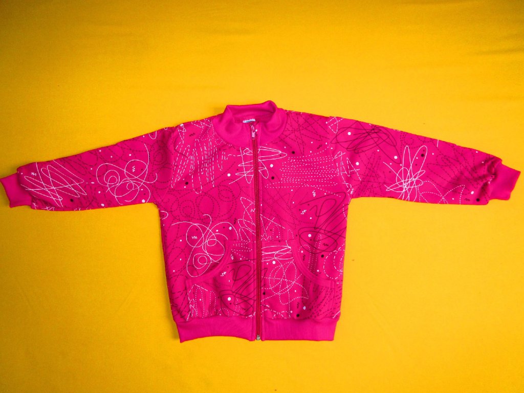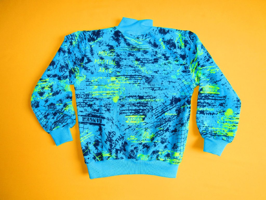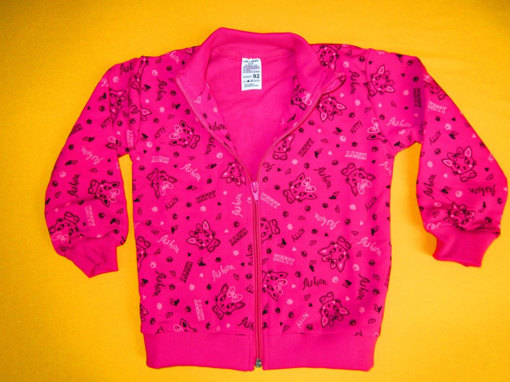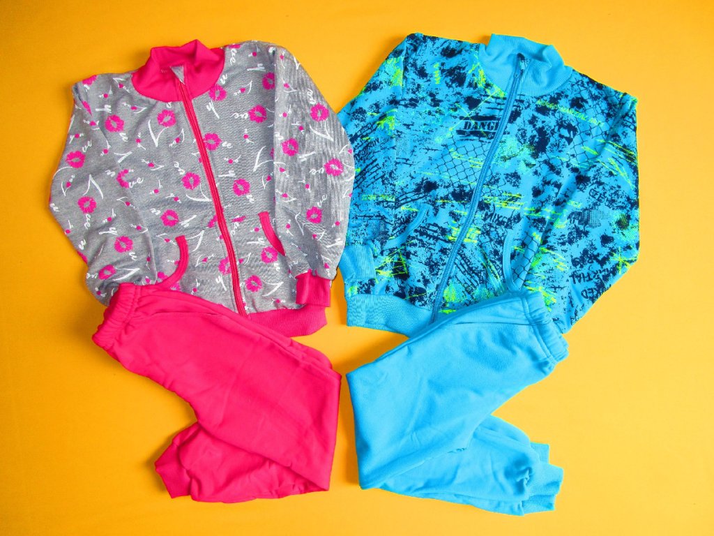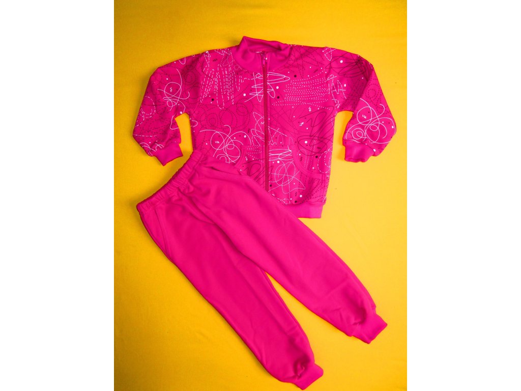 Tepláková souprava ze 100% nepočesané bavlny se skládá z mikiny se stojáčkem a tepláků s nohavicemi do manžety. Mikina je celopropínací na zip s celoplošným kvalitním potiskem, který bez problémů vydrží i opakované praní. 2 kapsy typu rozpůlené klokanky jsou našity ve spodní části předních dílů a jsou zvýrazněny barevně sladěným lemováním s tepláky. Rukávy a výstřih jsou zakončeny pružnými lemy barevně sladěnými s tepláky. U krku je všita krytka proti skřípnutí kůže. Jednobarevné jednoduché tepláky mají v horní části na pravé a levé straně předního dílu všité kapsy, nohavice jsou zakončeny manžetou z pružného lemu. V pase jsou tepláky do gumy. Díky polyesterové mřížce, která se vplétá do bavlny, nedochází k vytahování kolen a kapes. Doporučený způsob praní v pračce na 40ᵒC. Prát a žehlit po rubové straně.