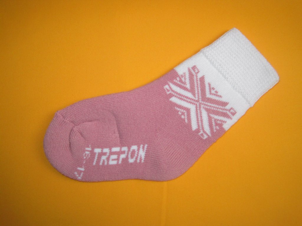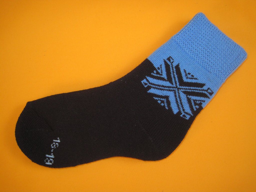 Dětské dvoubarevné teplé ponožky pro chladné zimní období. Z lícové strany jsou hladké s motivem vločky po stranách, rubová strana je z příjemného froté materiálu. Ponožky jsou elastické, mají široký pružný lem a vypracovanou patu i špičku. Pozor, velikost odpovídá velikosti chodidla v cm!!!