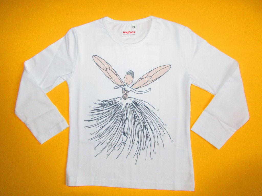 Dívčí tričko s dlouhým rukávem je ušito z mírně elastického příjemného jednolícího bavlněného materiálu. Tričko má klasický rovný střih. Na předním díle je nádherný potisk elegantní balleriny doplněný třpytivými brokátovými ozdobami, který tričku dodává slavnostní ráz. Kvalitní potisk bez problémů vydrží opakované praní. Rukávy a spodní lem trička jsou zakončeny dvojitým prošitím. Kulatý výstřih je olemovaný lemovkou. Doporučený způsob praní: Doporučený způsob praní: v pračce na 40ᵒC, žehlit po rubové straně.