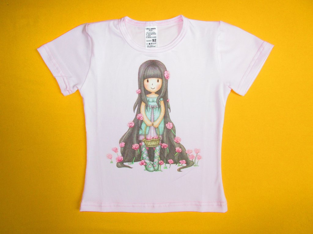 Letní dívčí tričko s krátkým rukávem je ušito z příjemného mírně elastického bavlněného materiálu. Přední díl je ozdoben prodyšným fototiskem s něžným motivem holčičky. Kvalitní fototisk bez problémů vydrží opakované praní. Tričko má mírně projmutý střih. Kulatý výstřih je zakončen lemováním s dvojitým prošitím. Spodní okraj trička a rukávy jsou zakončeny rovně dvojitým prošitím. Doporučený způsob praní: v pračce na 40ᵒC. Prát a žehlit po rubové straně.